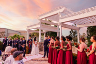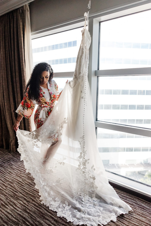 Traveling to Melbourne, Florida to celebrate the last wedding of 2022 did not disappoint. Cyndy and Matt's wedding was the biggest party of the year. From the moment we walked into the bridal suite and the groom's hotel room at the Hilton Melbourne, the music was pumping the laughter was everywhere. From there, it never stopped. Even their ceremony had so many moments that were symbolic of their love of fun. Each member of the bridal party danced their was down the aisle and instead of flower girls, they had a shot girl and shot guy who delivered shots to the guests 21+ that were carried in these precious dinosaur baskets.