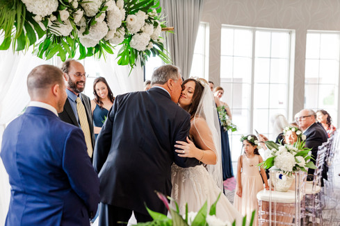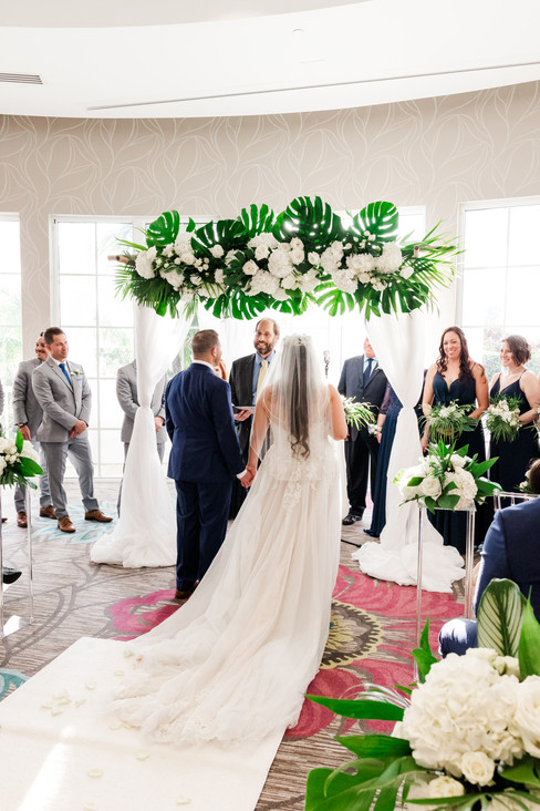 It was the perfect March day to be married in Jupiter! Jackie and Jordan were surrounded by their family and friends during their indoor ceremony at the beautiful Wyndham Grand Jupiter At Harbourside Place. The ceremony took place in the grand ball room of the hotel. It was secluded by floor to ceiling white drapery and overlooked the intercoastal waterway.