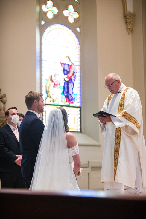 Although their wedding played out completely different than they had been planning, Luke and Anna's wedding weekend played out perfectly. What was supposed to be a spring wedding, turned into a perfect summer wedding. Luke and Anna recited their vows before family and friends near and on social media! They had people FaceTiming in as well as a Facebook Live happening. Not all of their family members could attend due to Covid-19, but that is not to say they lacked being surrounded by love. Their guests donned face masks for the entire ceremony, as did their entire wedding party. It was clear to see the deep breaths of fresh air as the guests readied themselves for a bubble exit! The sun peaked out long enough to create a rainbow affect in the bubbles that kissed them as they exited the church. Congratulations on becoming Husband and Wife! The party resumed the very next day where we were all graced with gorgeous weather and beautiful breezes. We couldn't have asked for anything more as their guest gathered around for food, laughs and corn hole on personally made corn hole boards by the groom himself. It was a wonderful event to be a part of and I wish Luke and Anna nothing but happiness and love for the rest of their days! Cheers!